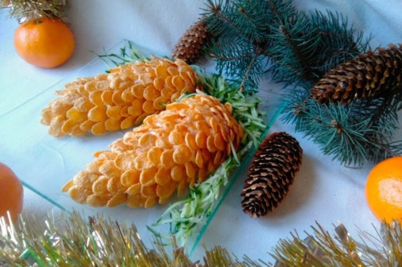 Świąteczna sałatka w kształcie szyszek to wspaniały zamiennik tradycyjnej sałatki. Trzy szyszki i trzy wspaniałe smaki. I możesz ozdobić sałatkę, jak chcesz (niesłodzone płatki, słone krakersy, pestki dyni) lub na bogato w migdały. Musisz przyznać, że wygląda oszałamiająco! Spróbuj i przekonaj się sama!