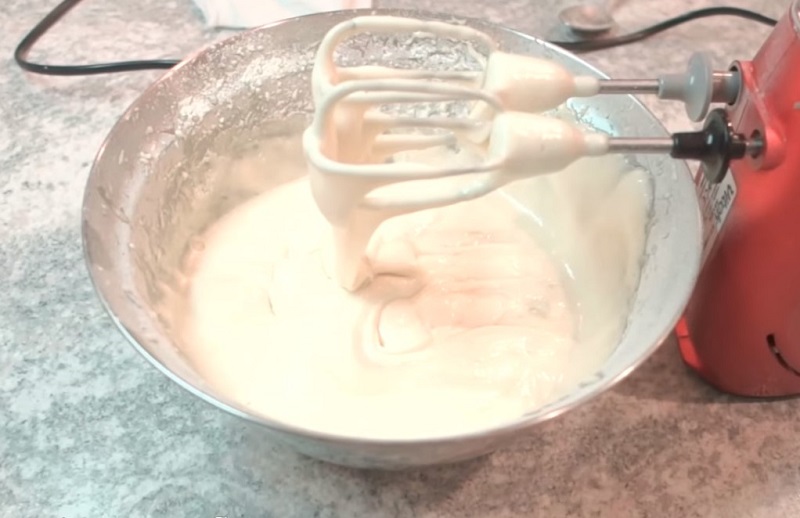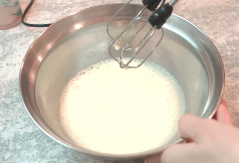3. Kontynuując ubijanie, dodaj śmietanę.