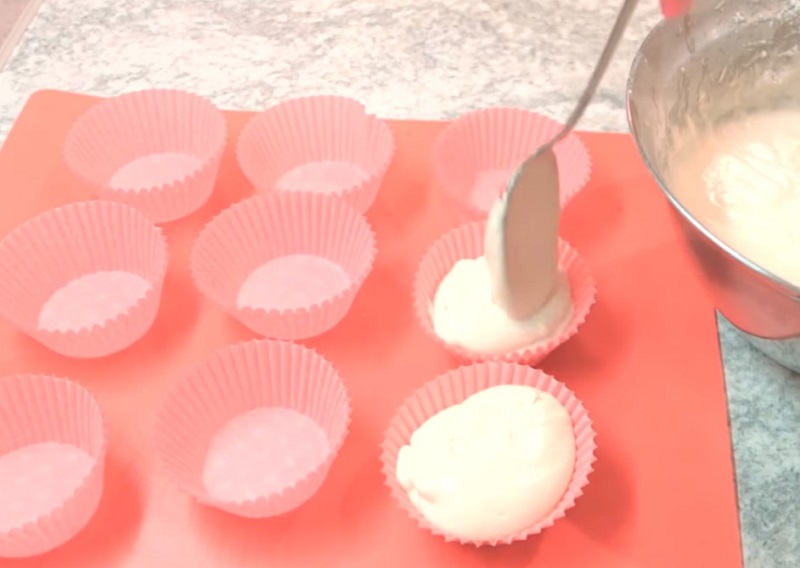 5. Wypełnij foremki ciastem do 2/3 wysokości. Rozgrzej piekarnik do 200 stopni i piecz babeczki przez 20–25 minut.
