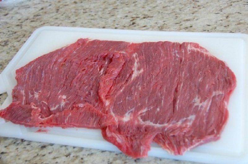 3.Czyste oraz osuszone mięso ponacinaj wzdłuż włókien , pamiętaj aby nie nacinać do samego końca. Całość przypraw dokładnie pieprzem oraz solą.