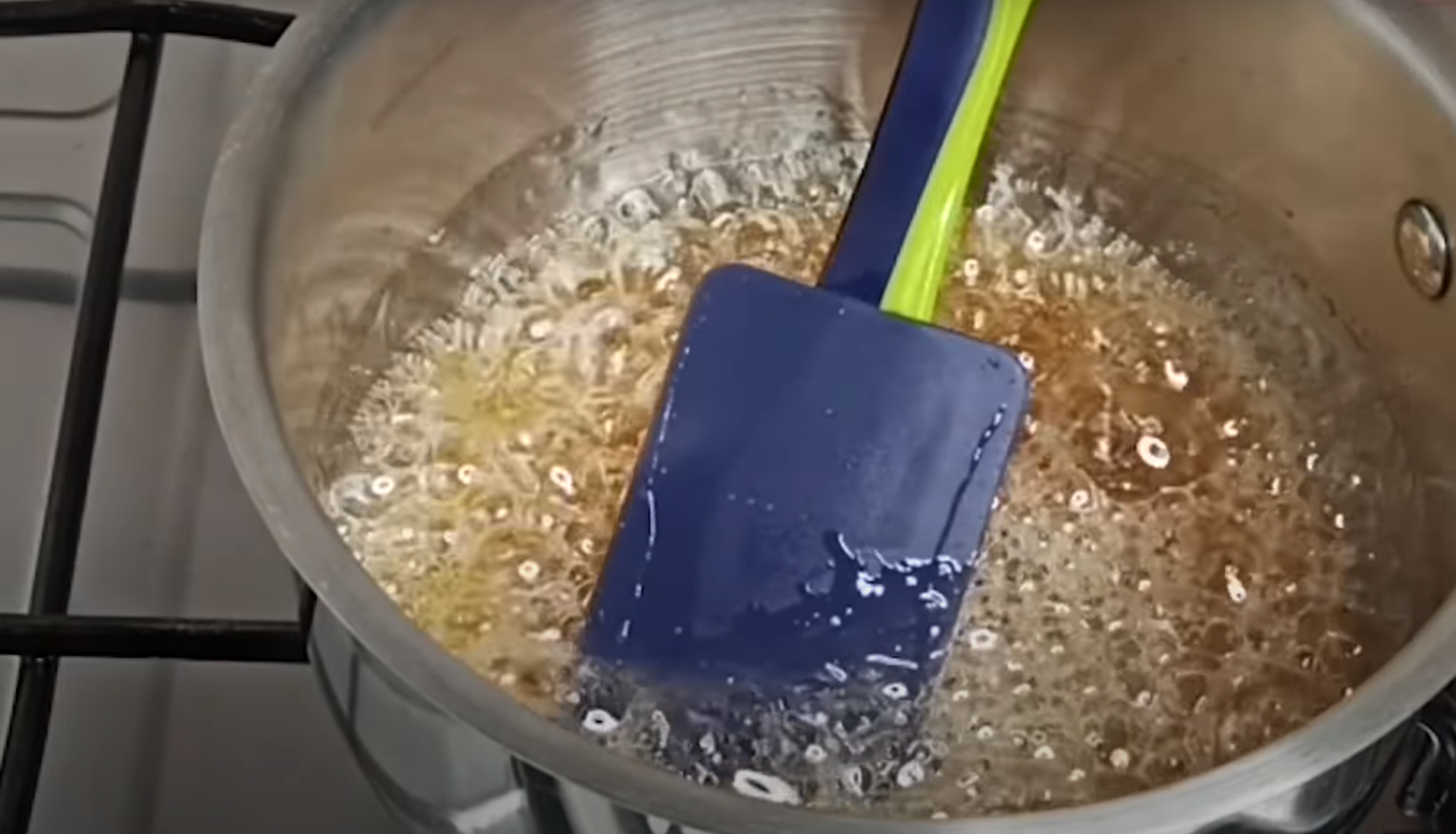 1. Na kuchence podgrzewaj w garnku szklankę miodu. Cały czas mieszaj , do momentu aż zacznie się gotować.