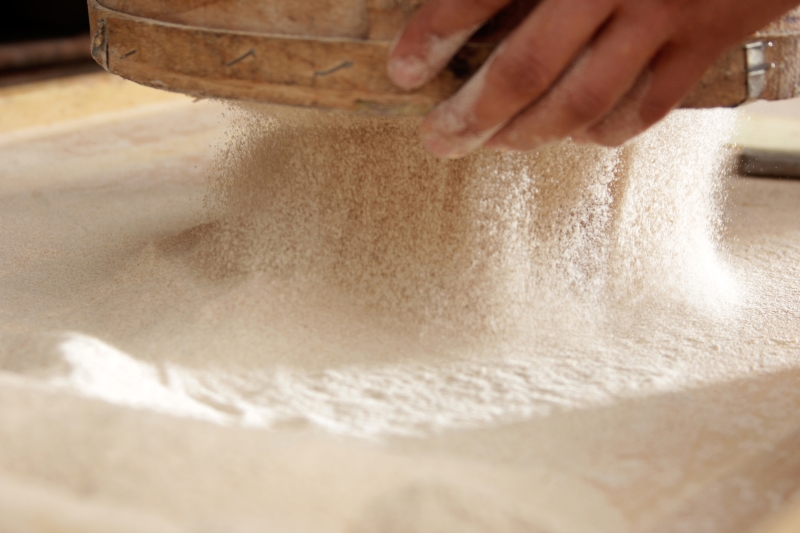 2. Następnie przygotuj ciasto. Przesiej mąkę i dodaj do niej suche drożdże.
