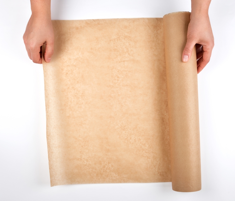 7. Blaszkę do pieczenia wyłóż papierem do pieczenia, posmaruj olejem. Poukładaj rozwałkowane ciasto na blaszkę i odstaw na 15–20 minut.
