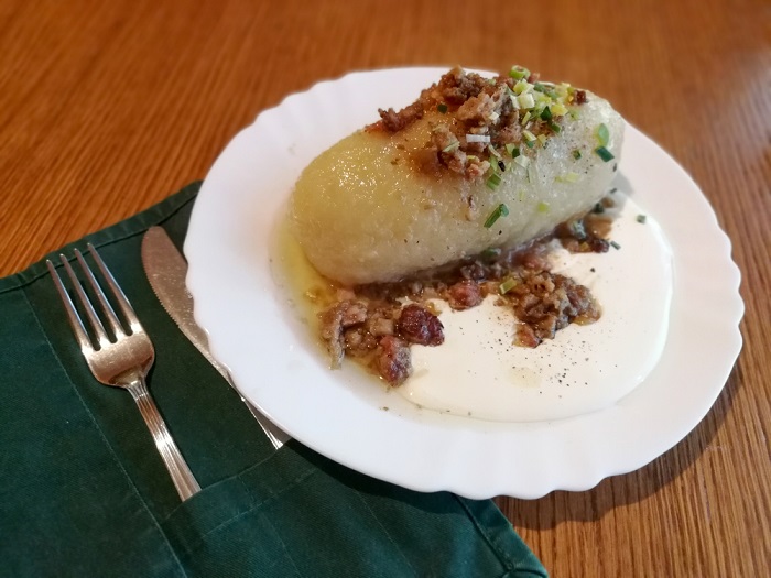 10. Podawaj cepeliny w głębokim talerzu, polane skwarkami i śmietaną. Smacznego!