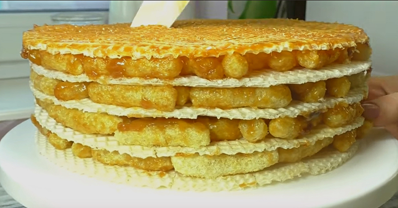 4. Ilość warstw pozostaje w twojej dobrej woli. Polej górny andrut resztą masy lub rozpuszczoną czekoladą. Możesz ozdobić według własnego uznania. Pozostaw deser przez 30 minut i podawaj.