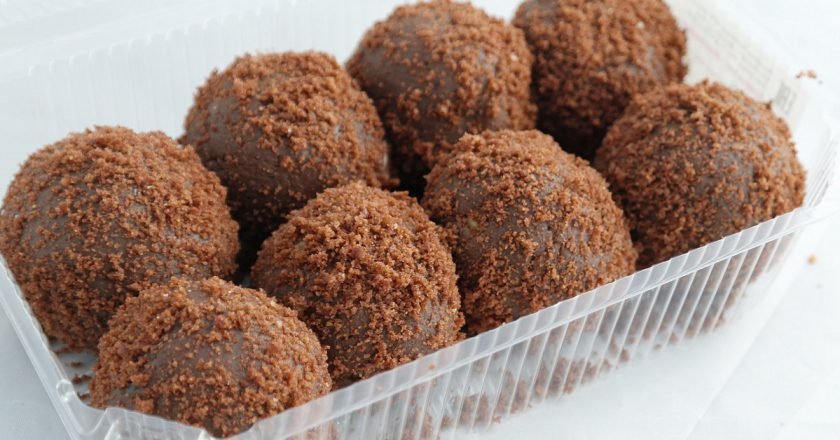 3.Gotowe kuleczki dokładnie obtaczaj w kakao. Następnie rozpuść czekoladę i polej nią przygotowane ciasteczka. Do tak przygotowanych ciasteczek nie musisz dodawać, ani grama cukru.