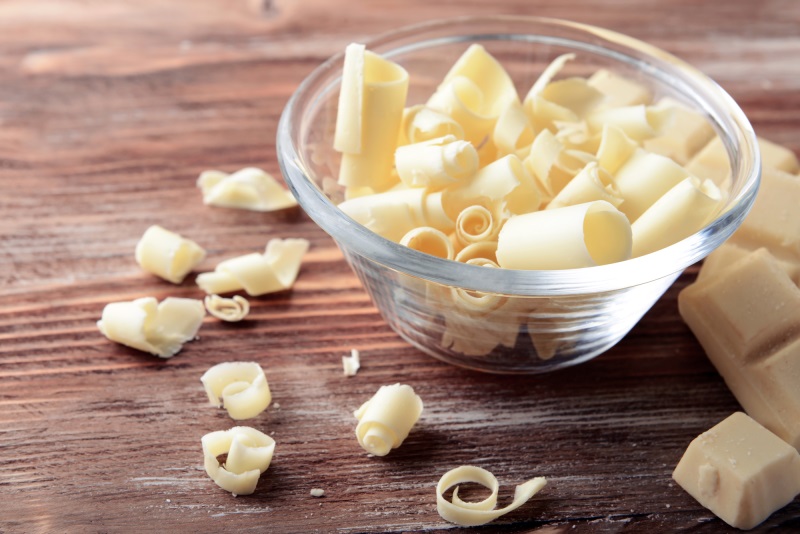 8. Odłóż 4 łyżki do osobnej miski i dodaj 30 g startej czekolady do pozostałej części śmietany i wymieszaj masę.