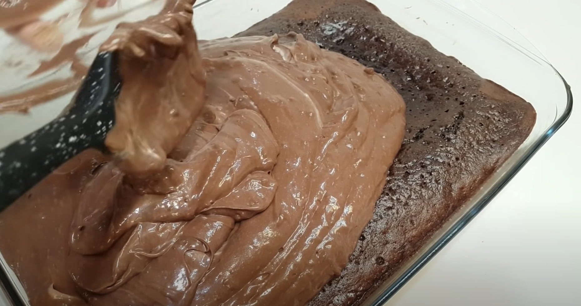 Gotową polewą posmaruj przygotowane ciasto. Aby deser piękniej wyglądał, zetrzyj na wierzch czekoladę, Życzę smacznego!