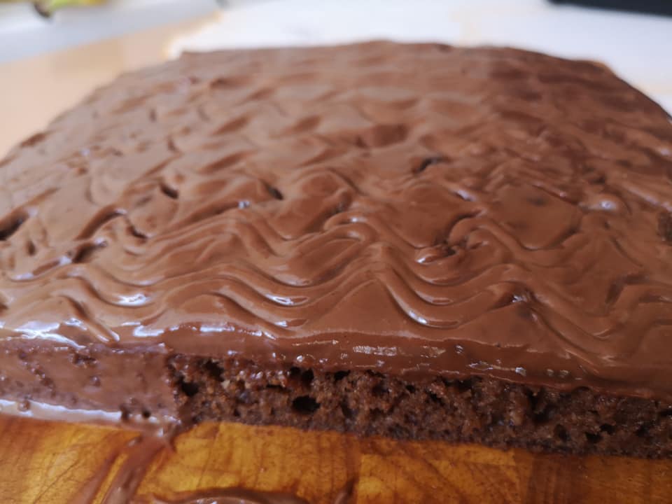 3.Odstaw na bok, aby ostygło, a Ty zacznij przygotowywać lukier. Za pomocą kuchenki mikrofalowej rozpuść dokładnie ulubioną czekoladę, po czym połącz ją z gęstą śmietaną. Rozsmaruj całość na gotowym cieście i posyp odrobina kawy lub kakao. Przechowuj w lodówce co najmniej 2 godziny. Życzę smacznego!