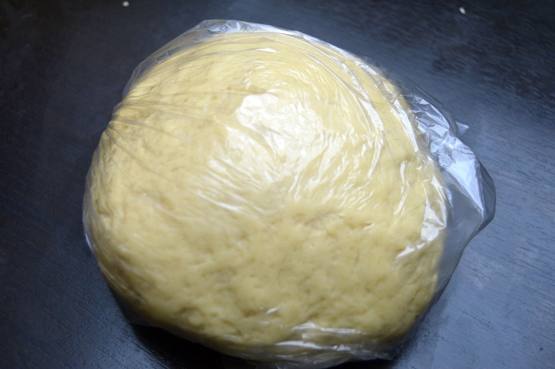 4. Owiń ciasto folią spożywczą i pozwól odpocząć przez 20-30 minut. W tym czasie stanie się bardziej elastyczne, łatwiej będzie je rozwałkować i rozciągać.