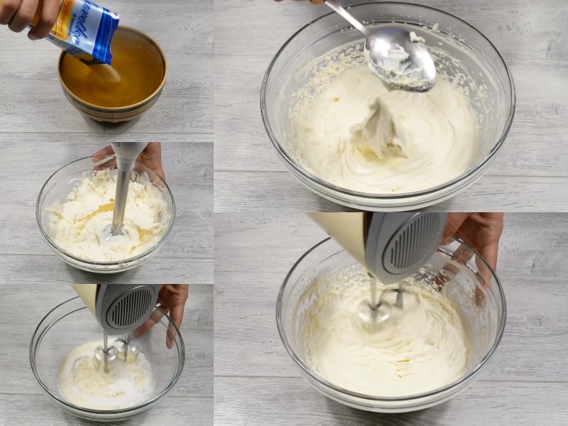 1. Galaretki rozpuścić w gorącej wodzie, a następnie ostudzić do temperatury pokojowej. Twaróg rozgnieć widelcem, potem dodaj śmietanę, cukier puder,cukier waniliowy i mieszaj mikserem na gładką, jednolitą masę.