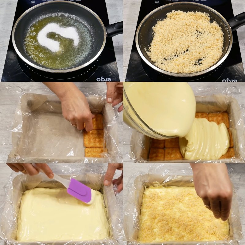 3. Na rozgrzanej patelni z masłem, upraż wiórki kokosowe z cukrem i odstaw do wystygnięcia.
