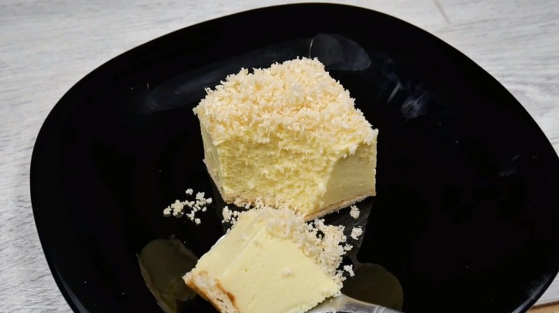 4. Wiórki kokosowe, wyłóż równomiernie na wierzchu ciasta i wstaw do lodówki na całą noc. Gotowe!