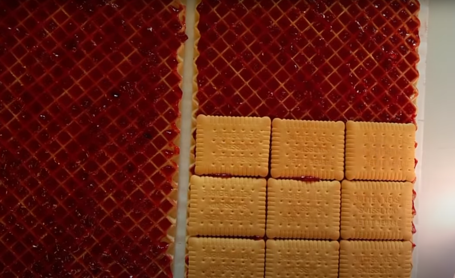 1. Ułóż wafle i posmaruj dżemem lub konfiturą, połóż na nie herbatniki, tak aby do siebie przylegały.