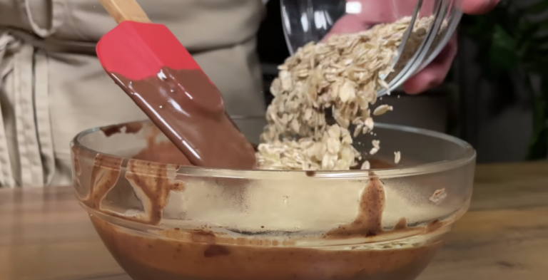 Wsypujemy płatki owsiane i dokładnie mieszamy.