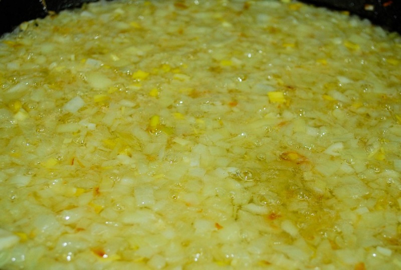 3. Na patelni usmaż drobno posiekaną cebulę.