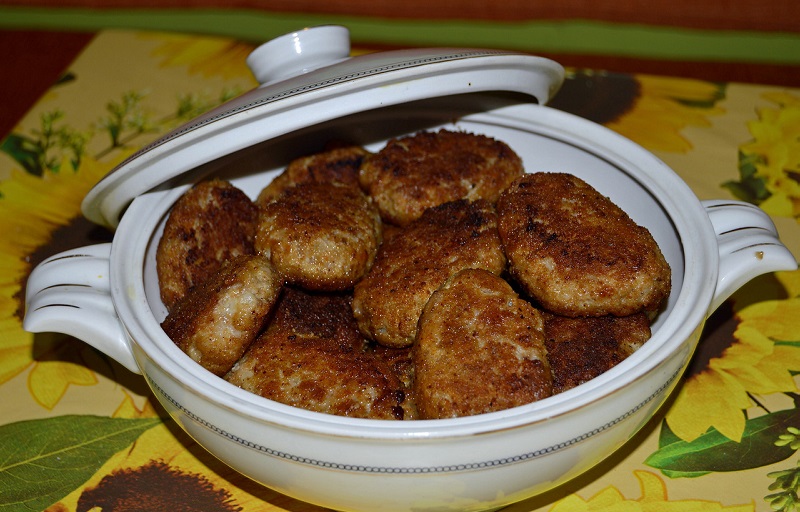 4. Z schłodzonego mięsa uformuj kotlety. Smaż je na oleju z obu stron na złoty kolor . W razie potrzeby można je obtoczyć w bułce tartej.