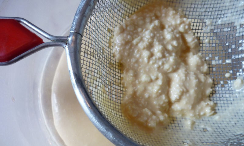 Jeśli twaróg jest grubo ziarnisty, najlepiej jest go zmielić w maszynce lub zblendować.