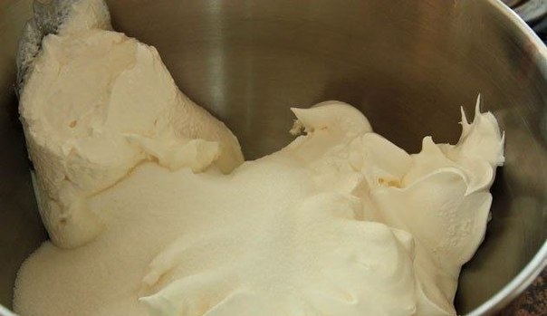 2. Ubij mikserem 1 szklankę cukru, kwaśną śmietanę i śmietankę. Przygotuj formę do ciasta – wysmaruj ją olejem.