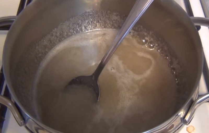 1. Na początek przygotuj syrop z wody i cukru. Po całkowitym rozpuszczeniu się cukru, wystarczy gotować przez 5 minut.