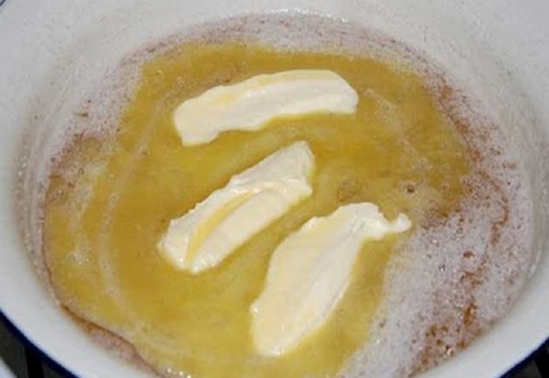 2. Do gorącego syropu dodaj masło. Kiedy się rozpuści wszystko dokładnie wymieszaj na gładką masę.