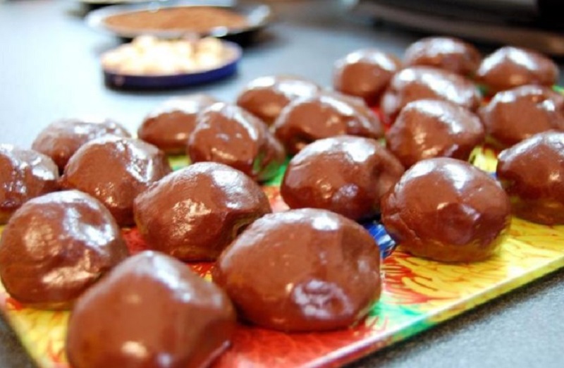 5. Po zastygnięciu masy, uformuj kulki i obtocz w kakao.