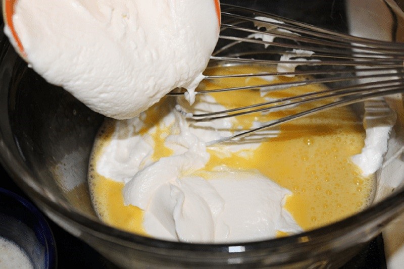 1. Jajka ubij z cukrem na sztywną pianę. Cukier musi całkowicie się rozpuścić.