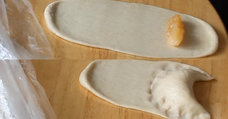 6.Ulubiony dżem połóż na brzegu przygotowanego ciasta, potem zagnieć mocno brzegi, aby nie wypadło Ci nadzienie.