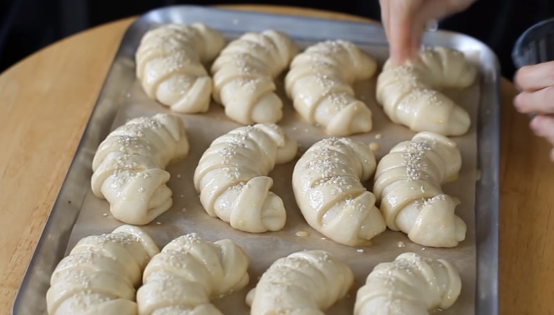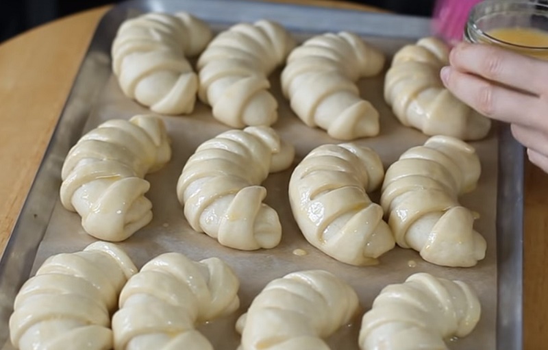 9.Roztrzep dokładnie jajko, następnie posmaruj nim każdy rogalik.