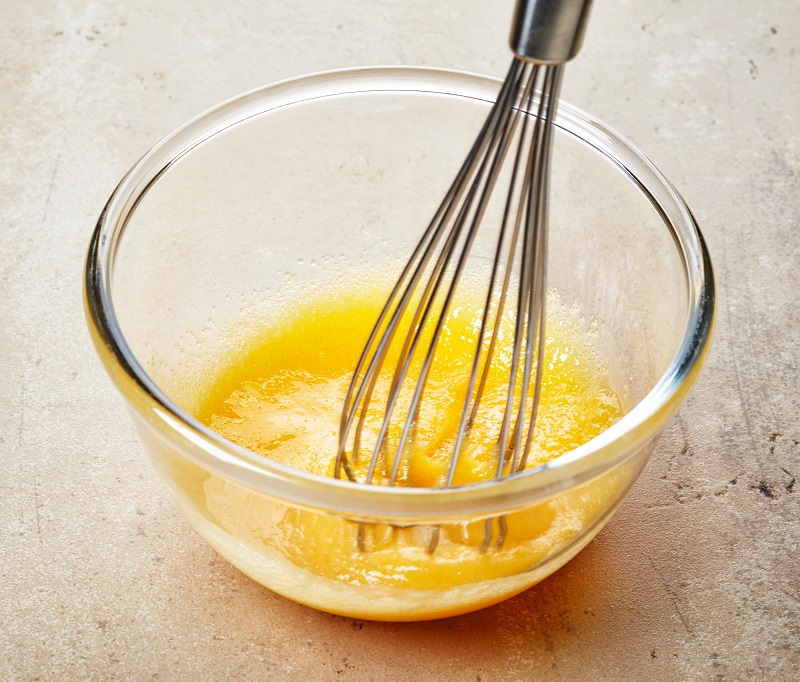 1. Utrzyj żółtka z cukrem i cukrem pudrem w wygodnej misce (taką, którą można podgrzać w kuchence mikrofalowej).