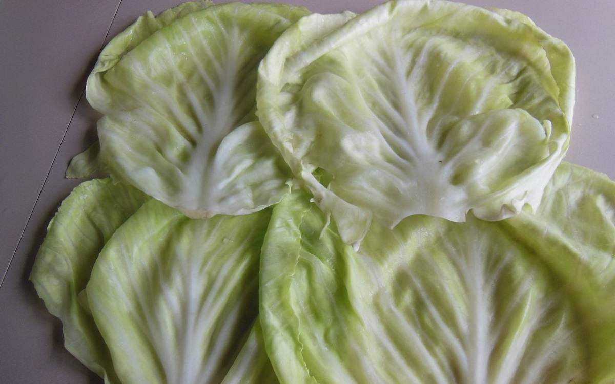 1.We wrzącej wodzie zaparz kapustę, później grube części odetnij.