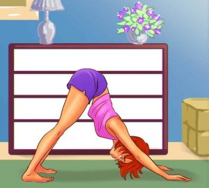Kolejnym zadaniem podczas tego ćwiczenia jest przeniesienie ciężaru na stopy i oparcie pięt na ziemi. Plecy powinny być proste i niezginane. Ćwiczenie to wykonujemy przez około 30 sekund i powtarzamy kilkukrotnie. Dzięki temu można uzyskać poprawienie przekrwienia twarzy, zregenerowanie komórek mózgowych czy też usunięcie skurczów szyi i poprawienie objawów cellulitu.