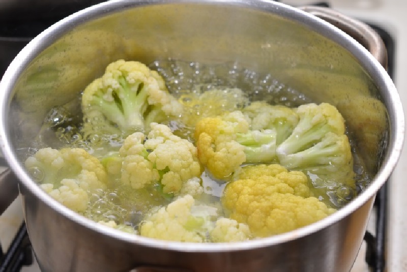 4. Zagotuj wodę, posól i ostrożnie włóż kalafior. Gotuj przez około 5-7 minut. Najważniejsze, aby się nie rozgotował.
