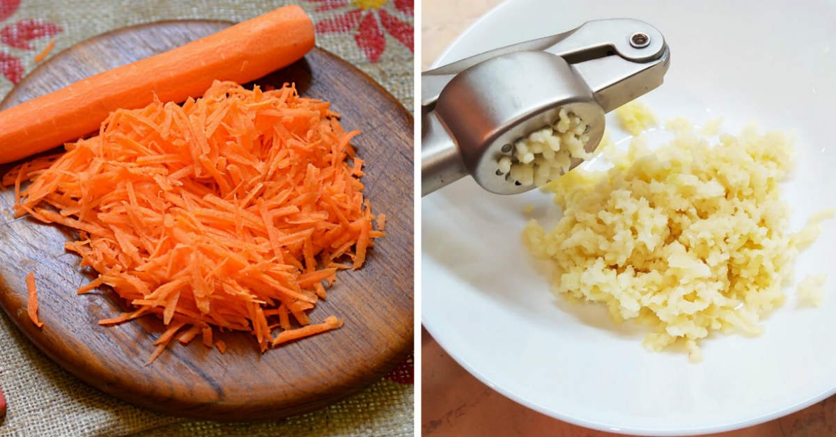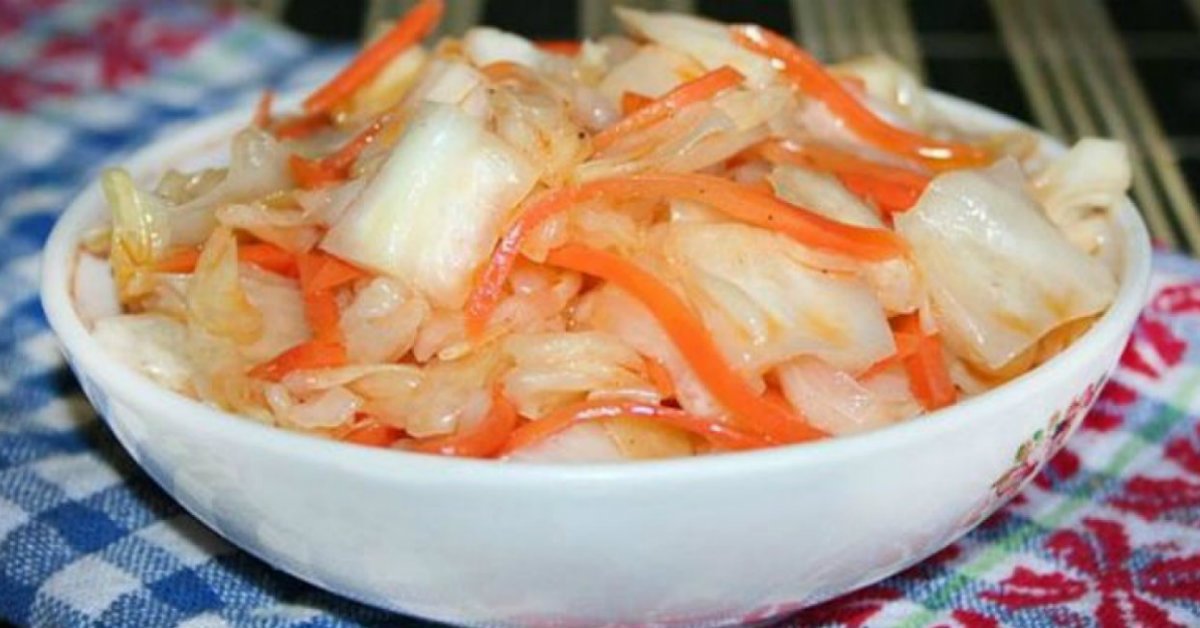 4. Do gorącej marynaty, dodaj startą marchewkę i kolendrę, potem ją wystudź. Kapustę włóż do miski, posyp czosnkiem i zalej przygotowaną marynatą.