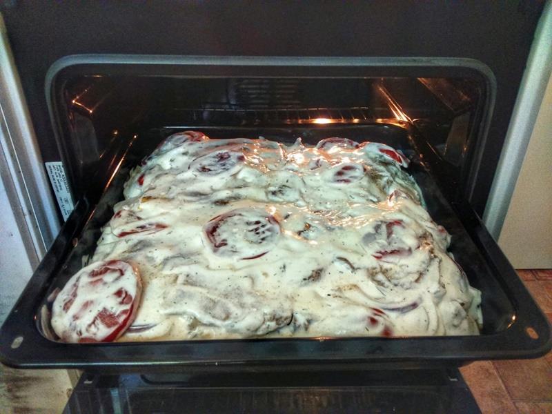 Blaszkę należy przykryć folią aluminiową, a piekarnik nagrzać do 200 stopni. Pieczemy przez około godzinę.
