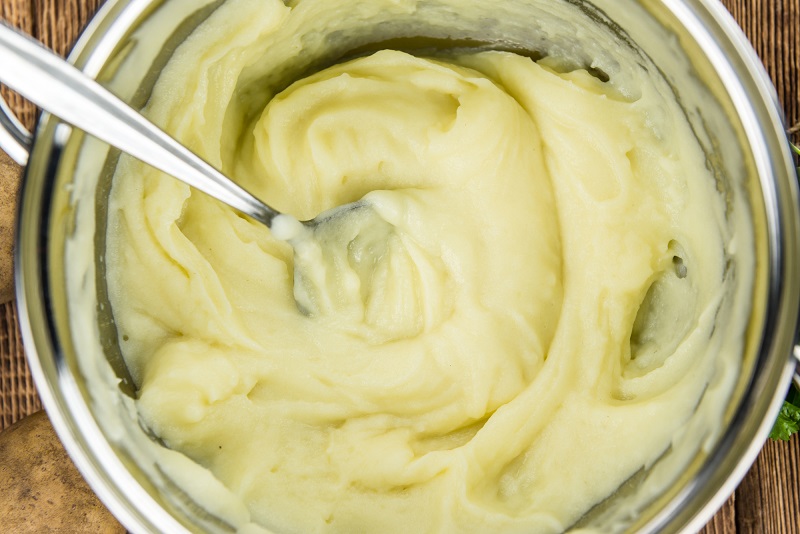 1.W osolonej wodzie ugotuj wszystkie obrane ziemniaki. Następnie odcedź z wody i ugnieć dodając ,także masło oraz mleko, aby powstało purre.