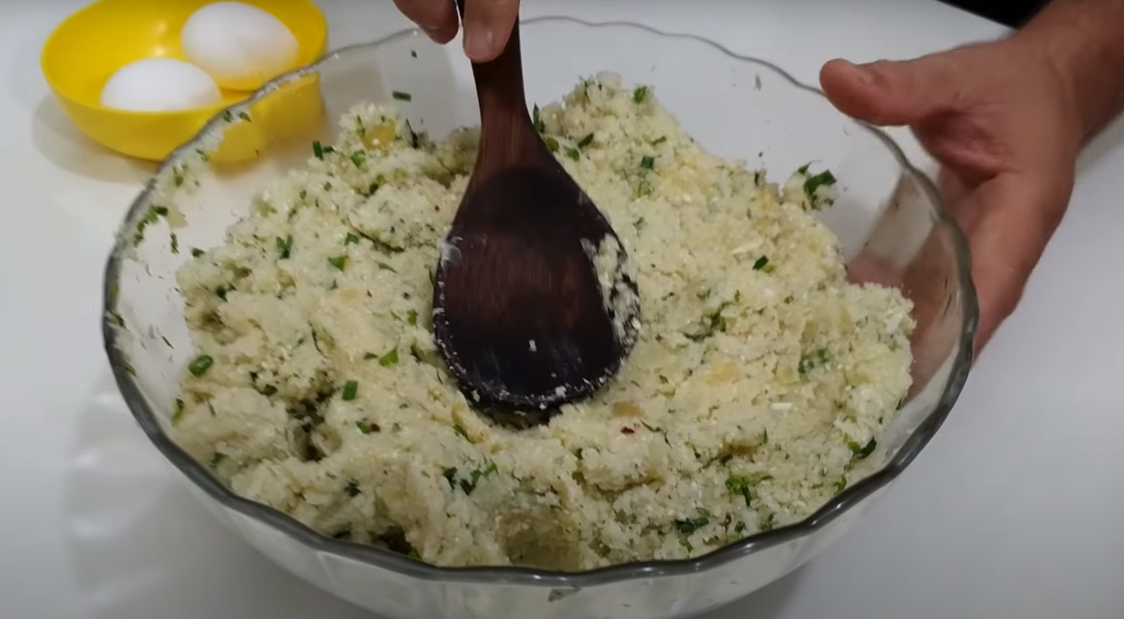 1.Za pomocą blendera zmiel obraną cebulę oraz paprykę. Tak zmielone warzywa umieść w misce. Ponownie Blenderem zmiksuj cały ryż, który także przełóż do miski z warzywami. Następnie przypraw całość solą oraz pieprzem, po czym dodaj tarty ser.