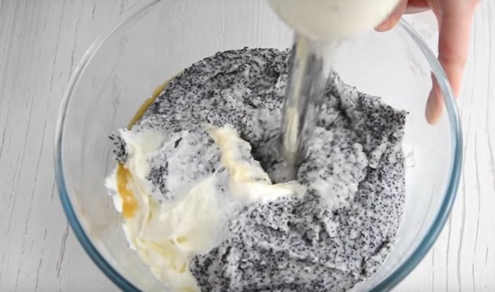 4.Ostyniętą masę makową dodaj do miski z twarogiem. Całość dokładnie wymieszaj Blenderem lub mikserem.