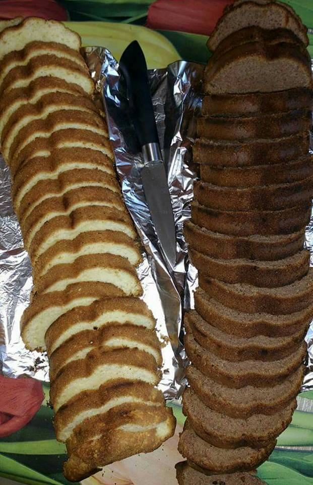 3. Tak przygotowane ciasto wlej na kolejną blachę i piecz w rozgrzanym piekarniku do 180 stopni przez 30 minut. Po upływie tego czasu, koniecznie upieczone ciasto wyjmij z blachy po czym odłóż je na bok, aby całkowicie ostygło. Na cienkie paski pokrój wystudzone ciasto (spójrz na zdjęcie poniżej).