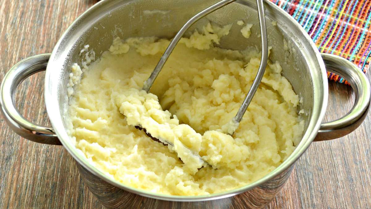 3.W osolonej gorącej wodzie ugotuj obrane ziemniaki. Następnie po ugotowaniu odlej wodę i dodaj masło, mleko oraz łyżeczkę soli. Po wymieszaniu dodaj również gałkę muszkatołową. Całość dokładnie połącz ze sobą. Przygotowane ziemniaki połącz z twarogiem. W osobnej misce połącz ze sobą koncentrat pomidorowy z pół łyżeczki soli.