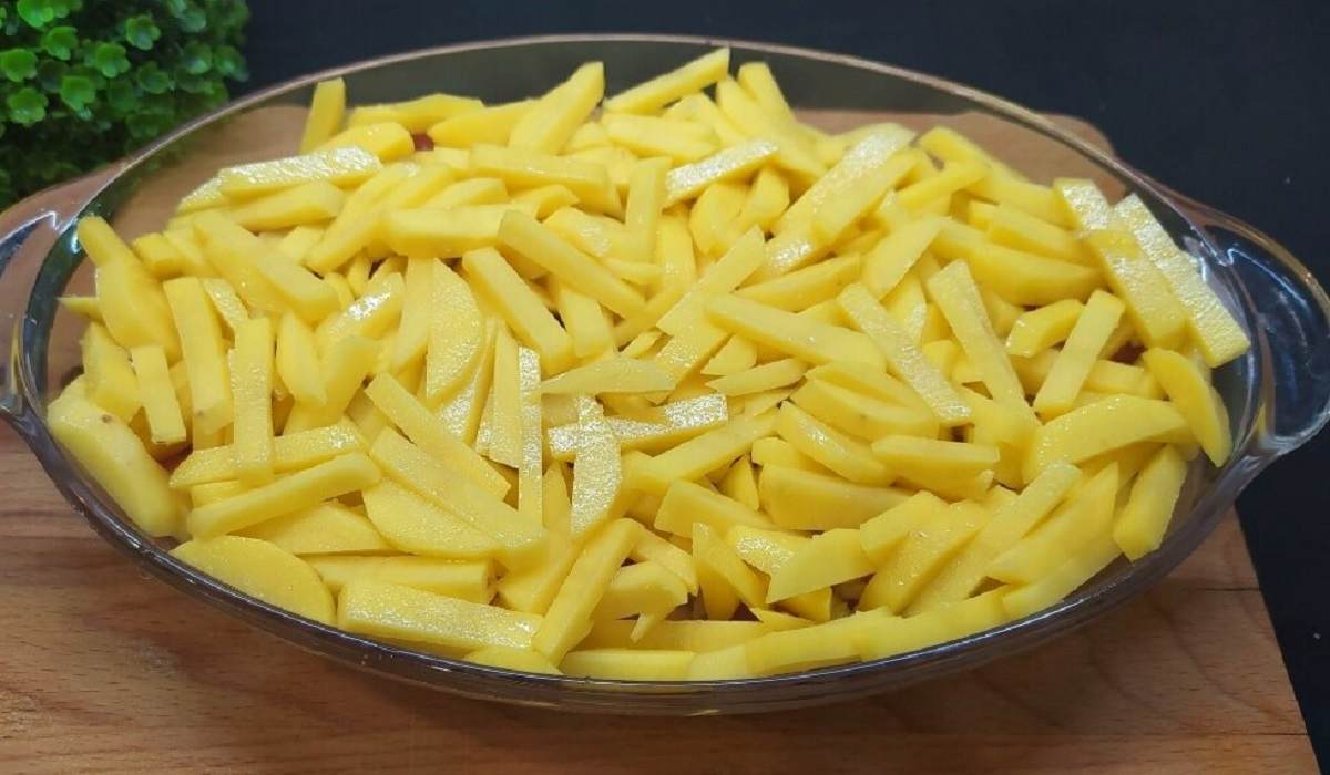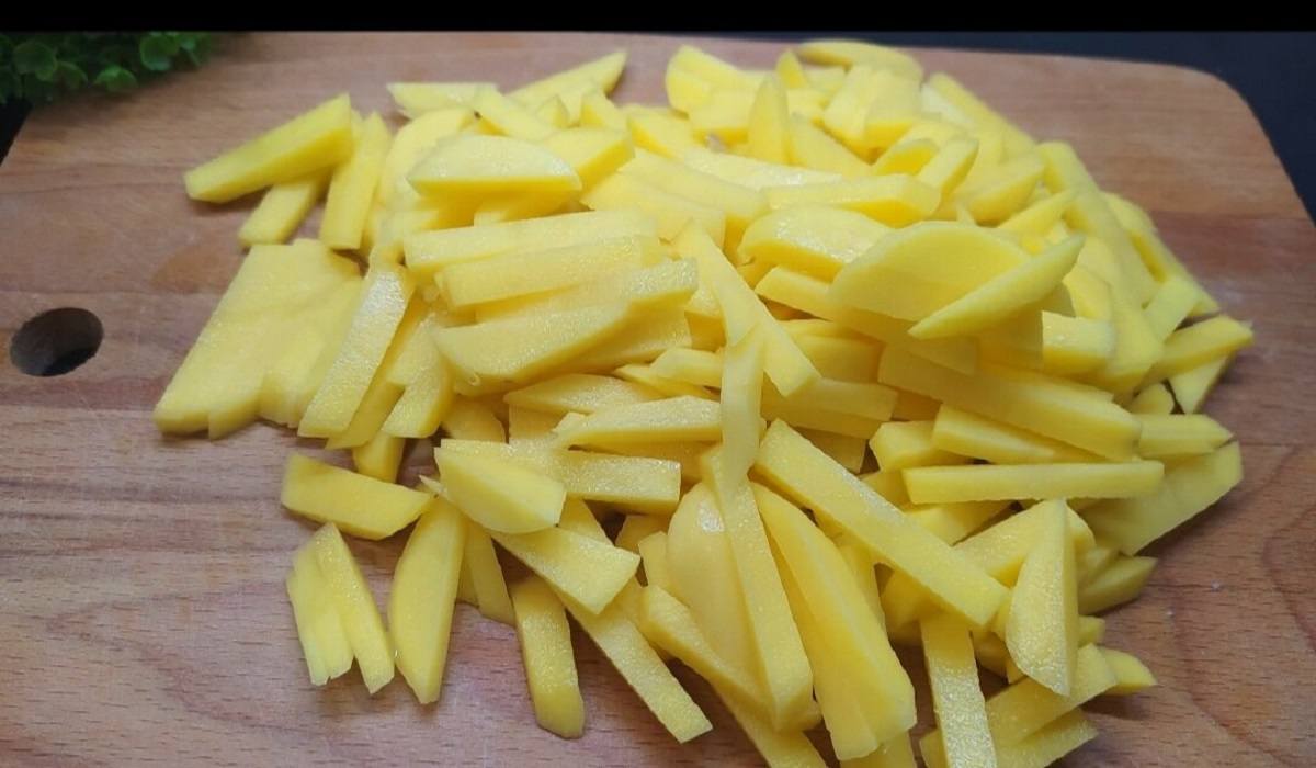 3. Umyj ziemniaki, następnie pokrój je w słupki o średniej wielkości.