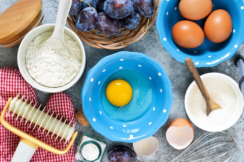 1. Ubij pięć jajek. Białka ubij z cukrem osobno, aż będzie sztywna i osobno żółtka. potem wymieszaj wszystko.