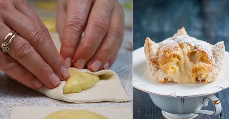 Pyszne kieszonki z ciasta francuskiego z lekkim kremem w środku z pewnością trafią do serc twoich najbliższych…Spróbuj i przekonaj się sama!