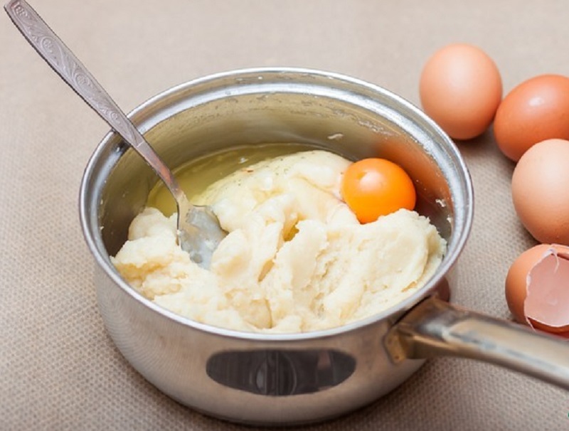 3. Teraz dodaj jajka. Dodawaj je pojedynczo. Ciasto powinno stać się gładkie i nie rozwarstwiać się.