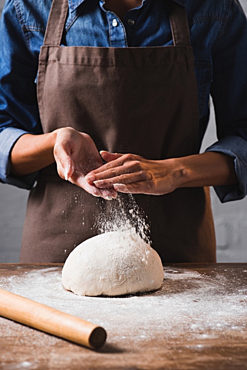 2. Gdy ciasto zgęstnieje, połóż je na blacie i ugniataj rękami.