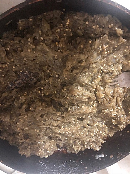 2. Upiecz bakłażana w piekarniku w temperaturze 180 stopni, do miękkości. Następnie ostudź i zmiel w maszynce do mięsa lub zblenduj.