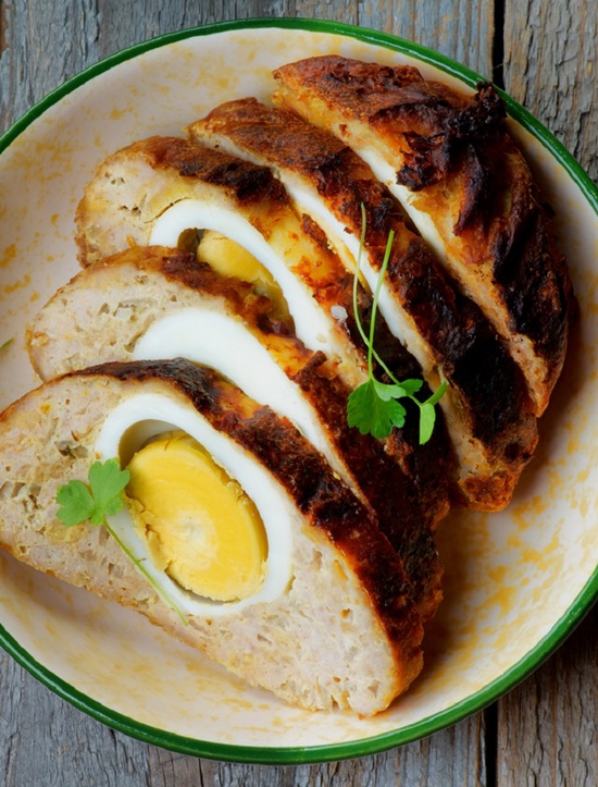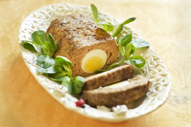Pieczeń jest tak samo łatwa w przygotowaniu jak kotlety mielone. Z jajkiem w środku, wygląda jednak bardziej dostojnie. Możesz podawać ją na gorąco, udekorowaną ziołami lub na zimno. Moje dzieci ciągle proszą o więcej…