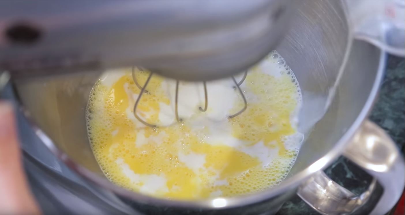 Na początku na gładką masę ubijamy jajka z dodatkiem mleka i soli. Stopniowo w trakcie ubijania dosypujemy mąkę.