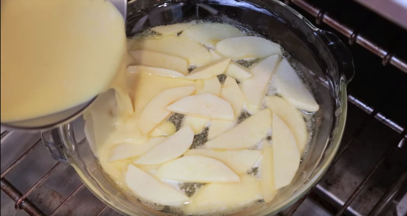 Wystarczy wylać jajka na wcześniej skrojone jabłka, a ślinka już cieknie. Zobacz co wyciągniesz z piekarnika.