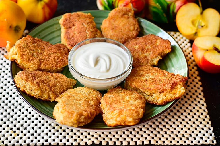 Jest to pyszny deser, ale również może być sycącym śniadaniem. Przygotowanie placuszków z jabłkami jest bardzo szybkie i prostsze. Każda odmiana jabłek będzie na pewno dobra.
